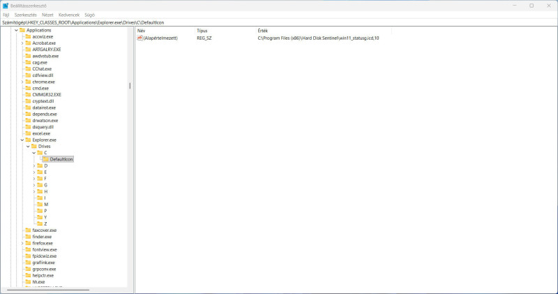 Nem, nálad ki lehet nyitni az explorer.exe ágat. Nálam nem. Ez lesz a marginális különbség. Ha kinyitod, ott látod majd a drive-okat betűjelenként, és abban lesz paraméterezve, hogy milyen ikont jelenítsen meg. Vélhetően az már hiányzik a rendszerből.