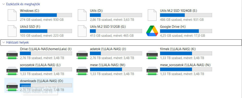 Nem látszik szinte sehol, az intézőben sem, a total commanderben sem, de a lemezkezelőben viszont látszanak. Sajnos nem tudom pontosan, hogy mikor tűntek el. Már minden progit letöröltem amire nincs szükségem, próbaként letöröltem a Google Drive-ot ls a Synology Drive-ot is, de semmi változás.