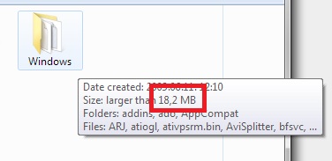 Az esetlegesen dinamukusan változó mappák (gondolok itt a rendszer és a users mappákra) esetén nem is a pontos méretet írja, hanem csak azt, hogy nagyobb mint, viszont legalábbis nekem a C meghajtón kívüli összes köteten korrekten írja a méretet, és nem azt, hogy nagyobb mint.