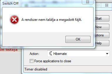 Gyakran használtam a gépet úgy hogy SwitchOff nevezetű progival beállítottam hogy 1-2 óra múlva kapcsoljon ki, addig pl szólt a zene ilyenek. A kikapcsolással nincs is gond de nem rég vettem észre hogy a nemrégiben még működő hibernálás, vagy készenlét nem működik. Arra ébredtem hogy a gép megy és egy hibaüzenet jelent meg: