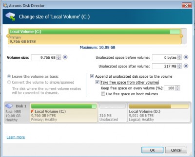 Ezután az Acronis Disk Director Suite progitól vártam hogy megoldja a dolgot,de nem sikerült.