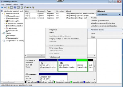 Lemezkezelő zsugorítani még tudta a D:-t annyival amennyivel növelni szerettem volna a C:-t (szabad terület) ,csak hozzáadni már nem tudta: