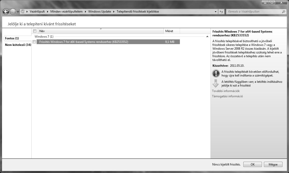 Sőt, a WSUS kritikus frissitésnek hozta, magától el is fogadta. -