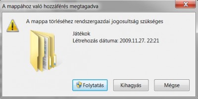 Ismerősöm gépét megcsináltam, hozzáteszem informatikus de nem ért hozzá, "no comment" és ha meg akarom nyitni vagy törölni akarom egyes fájlokat akkor ezzel szivat: