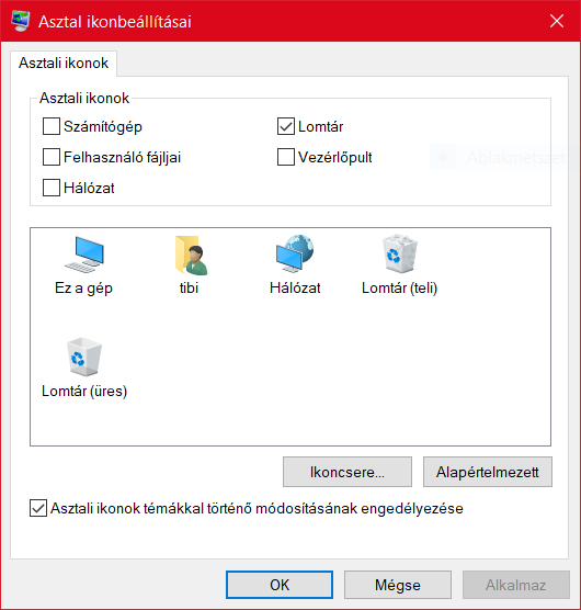 Gépház > Személyre szabás > Témák > Asztali ikonok