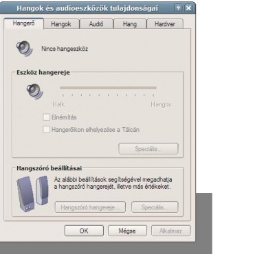 A hang beállítós résznél halvány az összes gomb tehát nem lehet rájuk nyomni és azt írja nincs hangeszköz. Pedig direkt ki lett húzva meg be lett duva a hangszóró dugó.