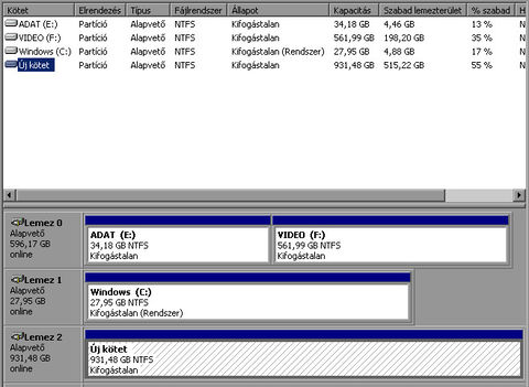 "Failed to complete the batch operations! Update system information failed!"Szóval külső progik XP alatt szépen látják a HDD-t és az MBR partíciót, kezelni is tudják (megszüntetni, létrekozni), de maga az XP rendszere nem veszi be az egészet, nem hajlandó felismerni.
