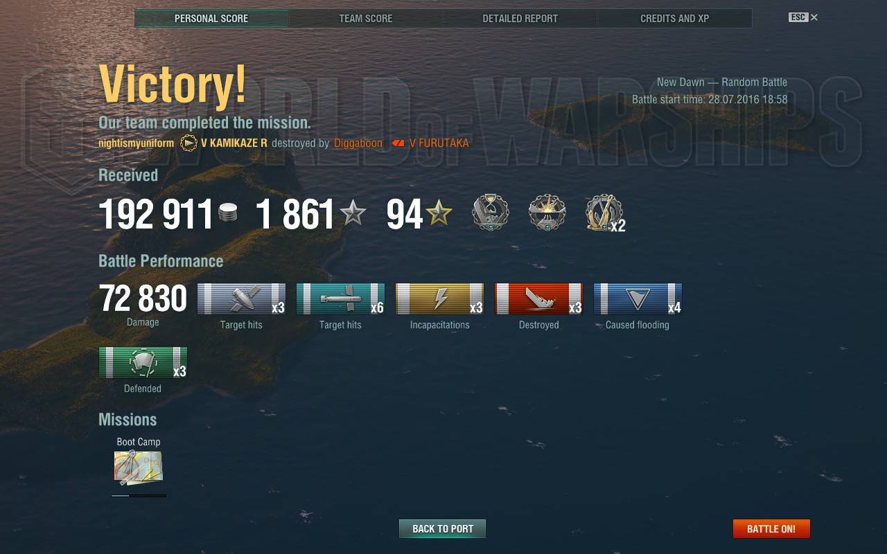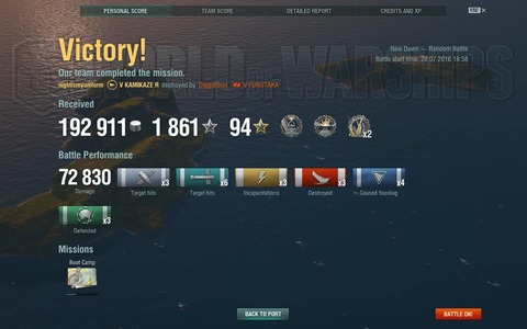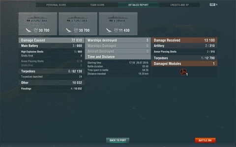 késve álltam neki a japán BB vonalnak, most lett nekem is meg a Fuso, de csak akkor vettem meg, amikor lett elég free XP a B hajótestre és a jobb motorra. nem csalódtam benne, nagyszerű hajó, első csatában 4 kill, de a dmg-nek még kell fejlődnie. egy Warspite-t 13km-ről két szalvóból kiszedtem vele.