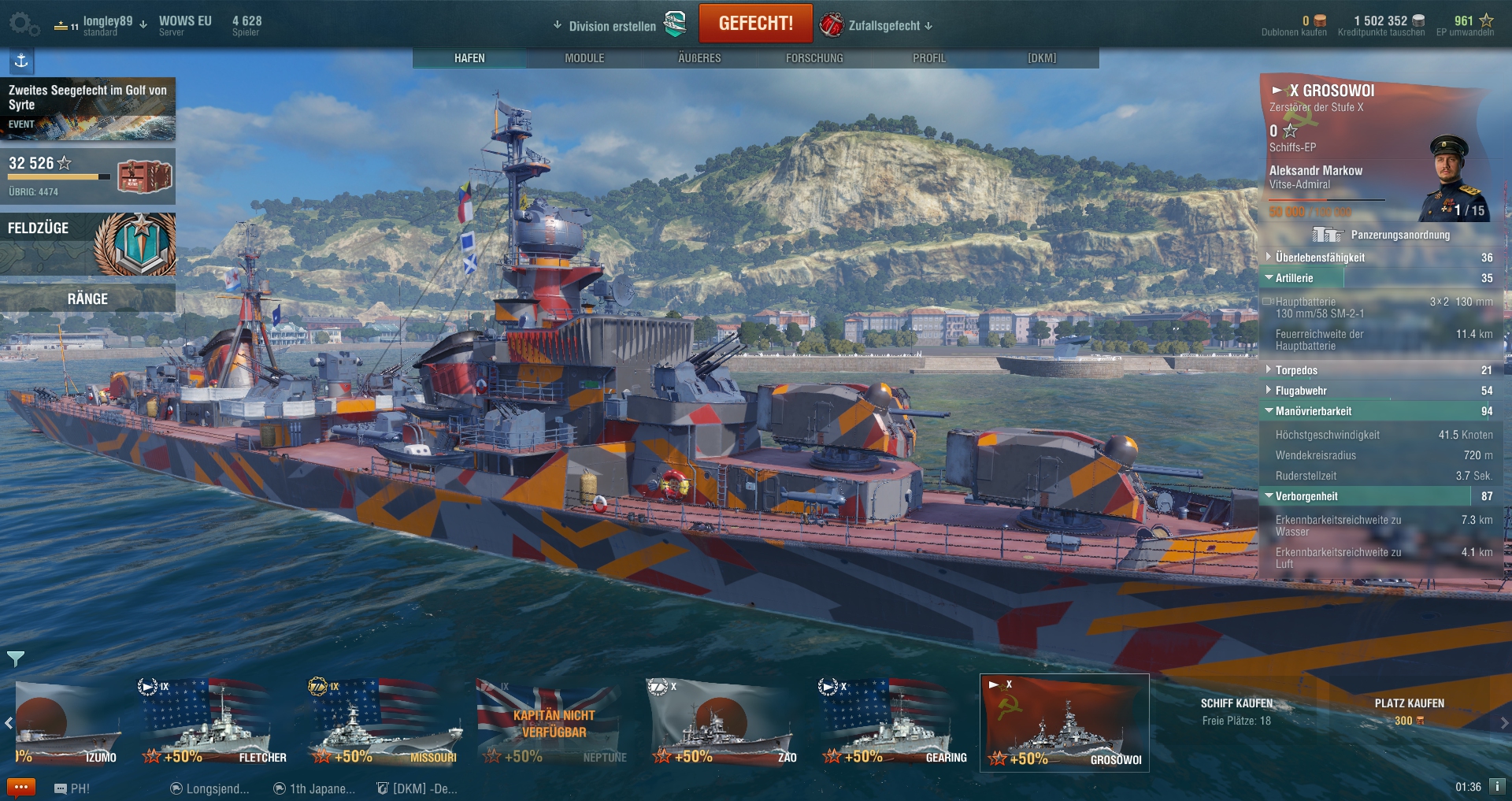 The top brass was thinking about re-selling Gremyaschy since it is no longer “special”, save for long torpedo range and 1% more fire chance compared to Soviet DDs. I would take it as an early April Fools, until they officially say that on Q&As or portal. - Armored patrol
