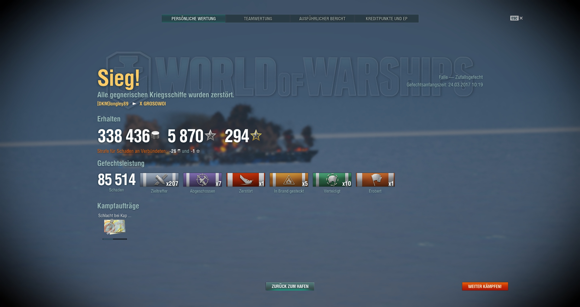 Good battle: deal at least a total of 300% of damage; sink at least three enemy ships."A 0.6.4 es patchtól megszűnik a Windows XP és Vista rendszerek támogatása. Ez lehető teszi majd h jobban optimalizálják a kilenst h gyorsabban és kényelmesebben működjön az újabb oprendszereken valamint h újabb grafikus technologiákat integráljanak majd a jövőben.