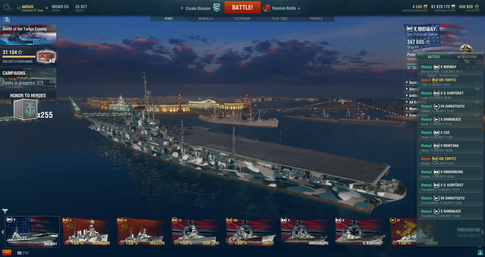 Nem értem miért volt az, hogy a Bismarck-al elért XP-ket is át kellett váltanom doubloonal convert XP-re.