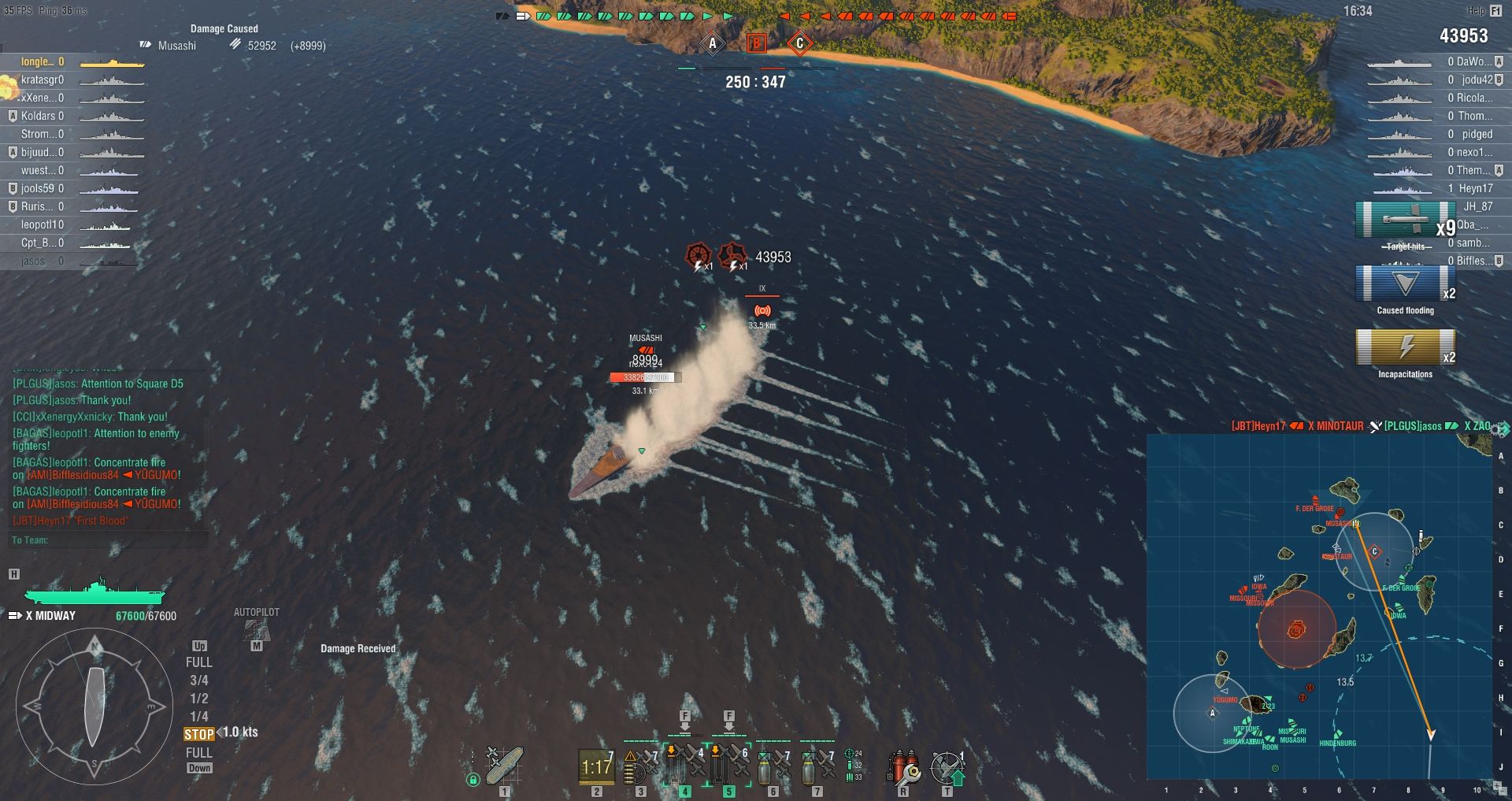 Második meccs, hasonló felállás, Midway kinézett magának, 29k-t sebeztem. Full AA build azért leszedte 19 gépét.