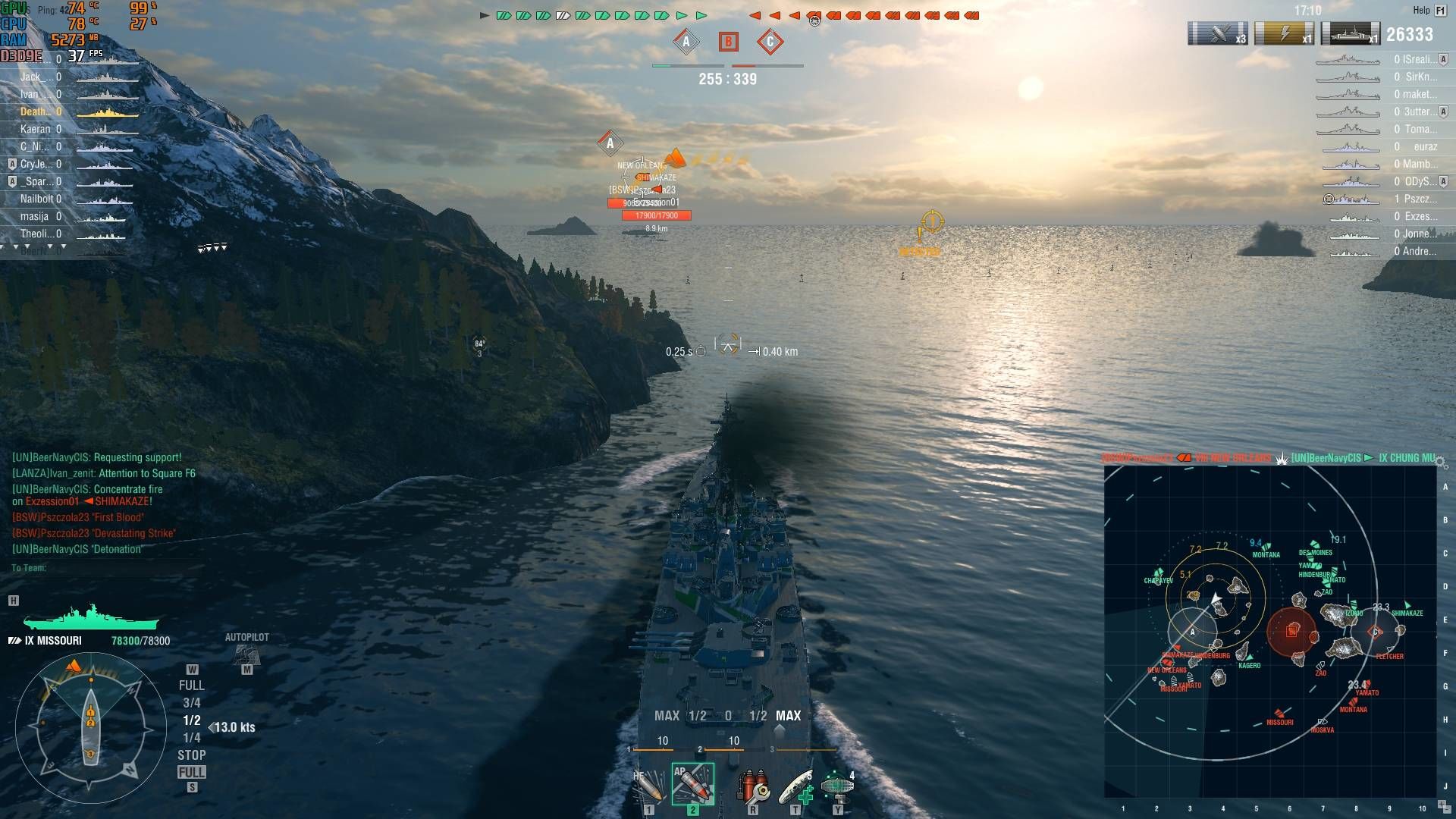 Gondoltam, belépek kicsit funolni estére. Felöltöztettem a Missit, hogy a szorzós körrel grindoljak némi fxp-t. Első, bemelegítő T5 csata loss, megesik, a másik két Missourisat megosztom, mert tényleg nem mindennapi:
