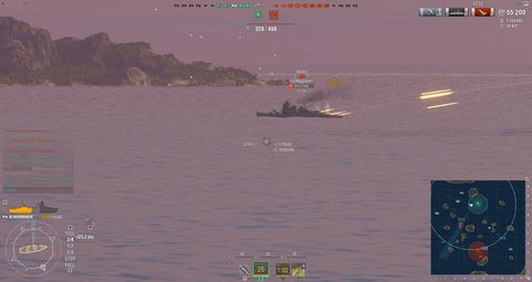 Reload time – 20 seconds, Sigma value of 2.65. The ship has the same dispersion ellipse as Graf Spee. It’s more than an average cruiser has, but less in comparison to a typical battleship. Maximum firing range - 20 350 meters.Armour – 25 mm. It’s worth mentioning that armour of casemate and the forward armour belt is 50 mm and with good citadel armour. This gives good potential to avoid damage from cruisers high-explosive shells and even ricochet the biggest shell in the game (460 mm) at acute angles. Number of charges of “Damage Control Party” is infinite. “Repair Party” restores 33% of citadel’s damage. Fire duration – 45 seconds.