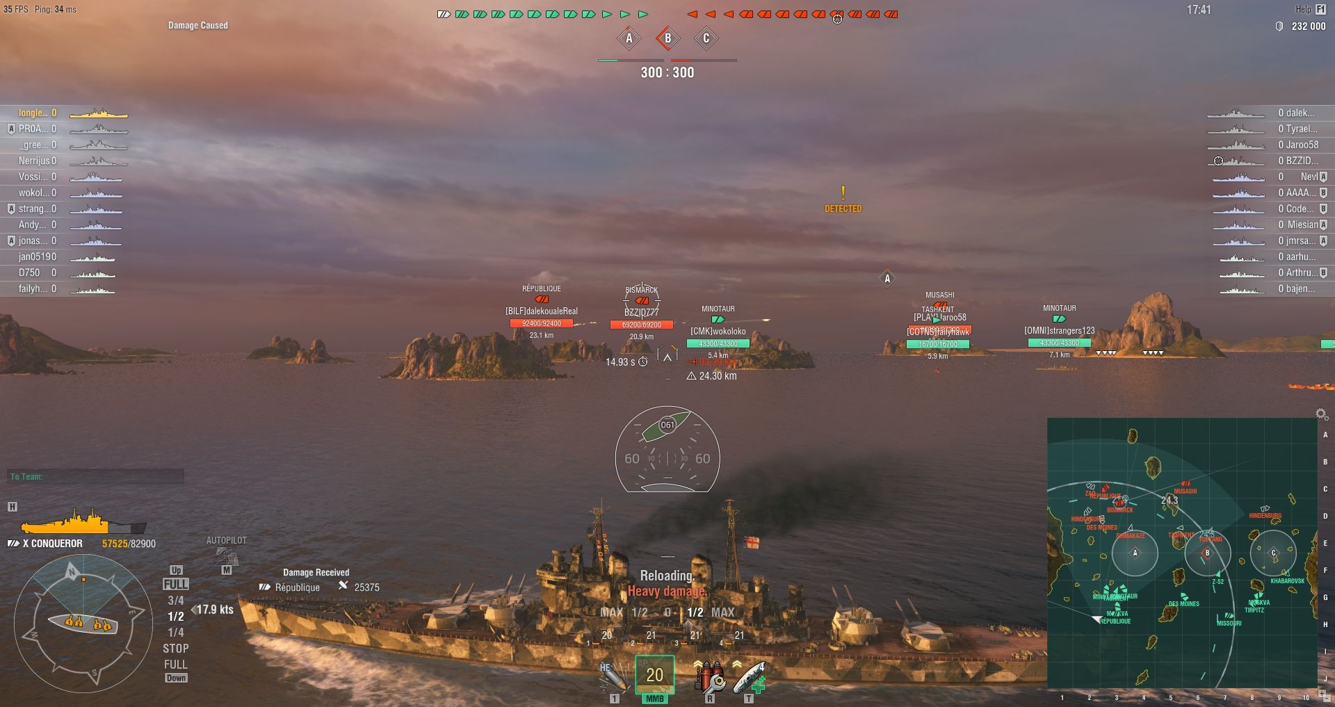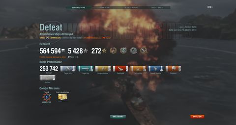 Ma összeakadtam egy Tirpitzel ellenségként. Nálam Normandie, full broadside mind a ketten. Én belelőttem 15k-t, ő belém 6k. Amíg nem buffolják elő nem veszem többé. Csak zászló pazarlás lett az a hajó.
