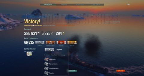 The Cruisers ballistics allow effective fire at any distance with a high chance of penetration. The unique dispersion ellipse gives this ship pretty high accuracy but at the same time is less efficient than that of any other tier X cruiser.