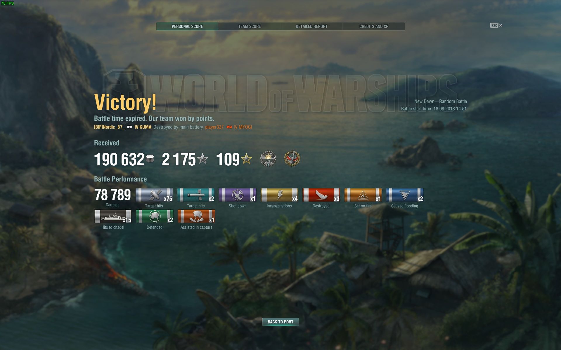 . Sajnos a Myogi elől már nem tudtam meglépni 400hp-val, de nyertünk ,mert a béna DD-júk nem bírta az utolsó 200HP-jót lelőni a CV-knek, aki egész meccsen semmit se csinált, mégcsak nem is ölt meg egy hajót se.