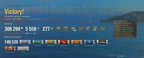 Along with the change in the progression of air defense and overlapping zones, we have also changed the parameters of consumable "Defensive AA Fire" for all classes. From now on the continuous damage bonus is equal 50% instead of 100% and 200%, but the damage in explosions is now increased from 100% and 200% to 300%. For the cruiser Stalingrad, the bonus to continuous damage will be 25%, because the duration of the consumable is 60 seconds, instead of the standard 40 seconds. The continuous damage bonus is now decreased due to the new air defense mechanics and due to the summing of one ship's damage zones - considering old values this gain would be extremely effective and leave no chance for the squadron to break through to the target or escape from AA zones. The values of consumable for destroyers is now equated to other classes because after progression changing, the characteristics of AA in ships with a weak configuration was strengthened and the effectiveness of destroyers with good air defense under "Defensive AA Fire" exceeded the power of cruisers and battleships. For example, the AA effectiveness of Grozovoi with activated consumable exceeded the effectiveness of the air defense of the battleship Kremlin. Instead of a reduced bonus to continuous damage, the damage caused by explosions will be increased. Now when the aircraft enters explosions during the action of " Defensive AA Fire " it is almost guaranteed to be destroyed. Please recall, that explosions with activated consumable are highlighted in red.