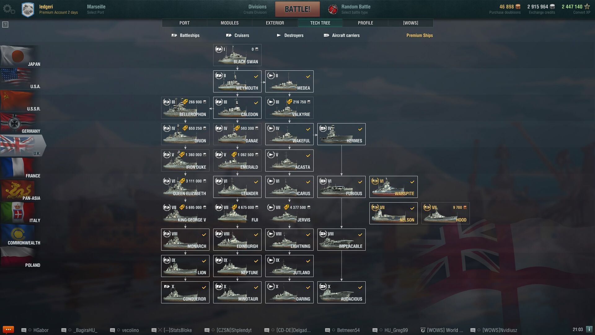 - ha van legalább 2 db t10 tech tree hajód a portban, akkor kapsz egyszeri 10k RP-t