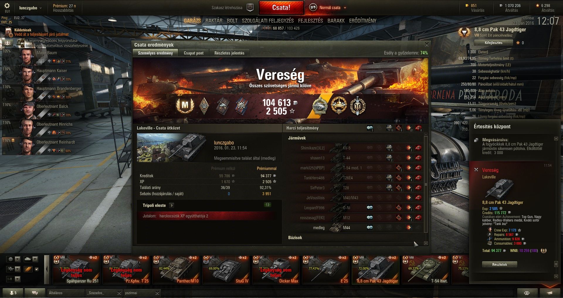 Mai utolsó csatám. Ram II-vel tank ász, top gun, ~37k profit meg minden nyalánkság A végén természetesen az Excelsiort nem vitte át az utolsó lövedékem...