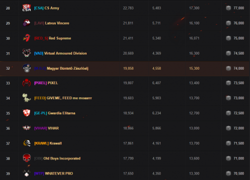 Tegnap jó napot zártunk és feljöttünk a 32. helyre. Érdekesség, hogy a 30-40 hely között 4 magyar klán van, kíváncsi vagyok melyik lesz a végez legelőrébb.