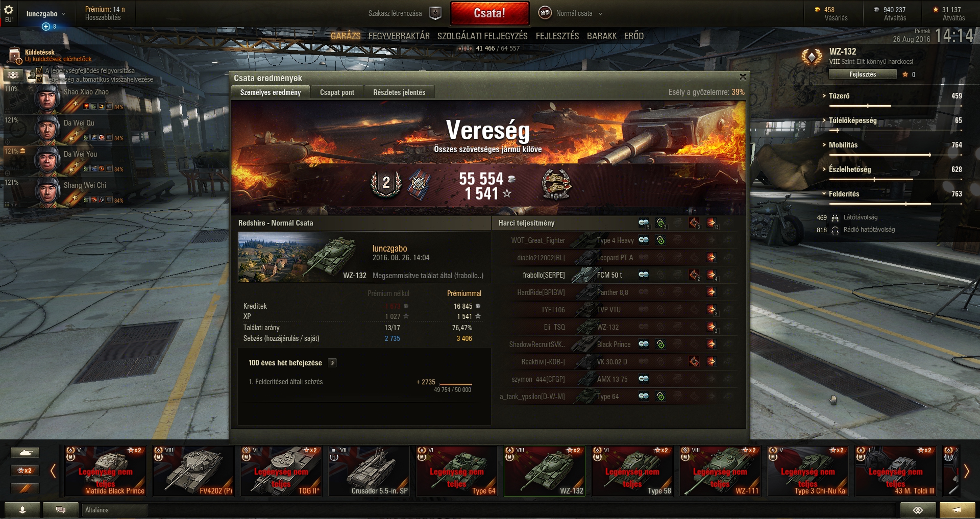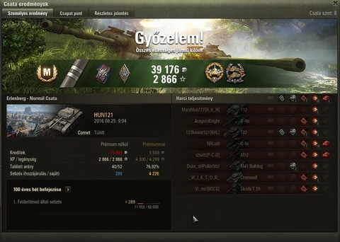 (#120055) jano_77: Szép körök! Tényleg jó kis tank. Igaz, hogy én csak 52 csatát mentem a 12t-vel, de még így is jóval az overall átlagom felett volt vele a teljesítményem. Most a 13 75-tel megyek, az sem rossz, ha beadja...