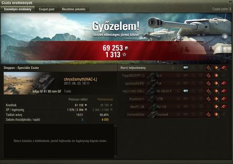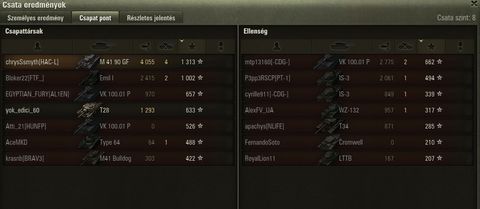 Tegnap mar egyedil mentem es 50%al jobb lett a wn8am.. pedig meg mindig alulteljesitettem magam picit
