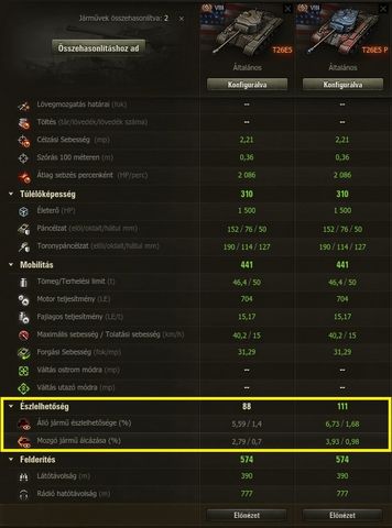 Ha logikusan lenne megcsinálva akkor az előre festett verzió is +5% camo bónuszt adna. De mivel a wg-ről van szó, természetesen nem logikusan csinálták meg. Ahelyett, hogy +5% bónuszt adna az a festés is, inkább úgy oldották meg, hogy arra a tankra semmilyen festés bónusz nem vonatkozik cserében megemelték az alap camo értékét. Mivel az alap camo érték szorzódik mindenféle módosítóval (legénység camo skillje, bia, venti, kóla) így a két tank camo-ja teljesen eltérően viselkedik.Alapból camo skill nélküli legénységnél a festetlen sima verziónak rosszabb a camo értéke, mint P verzióé: