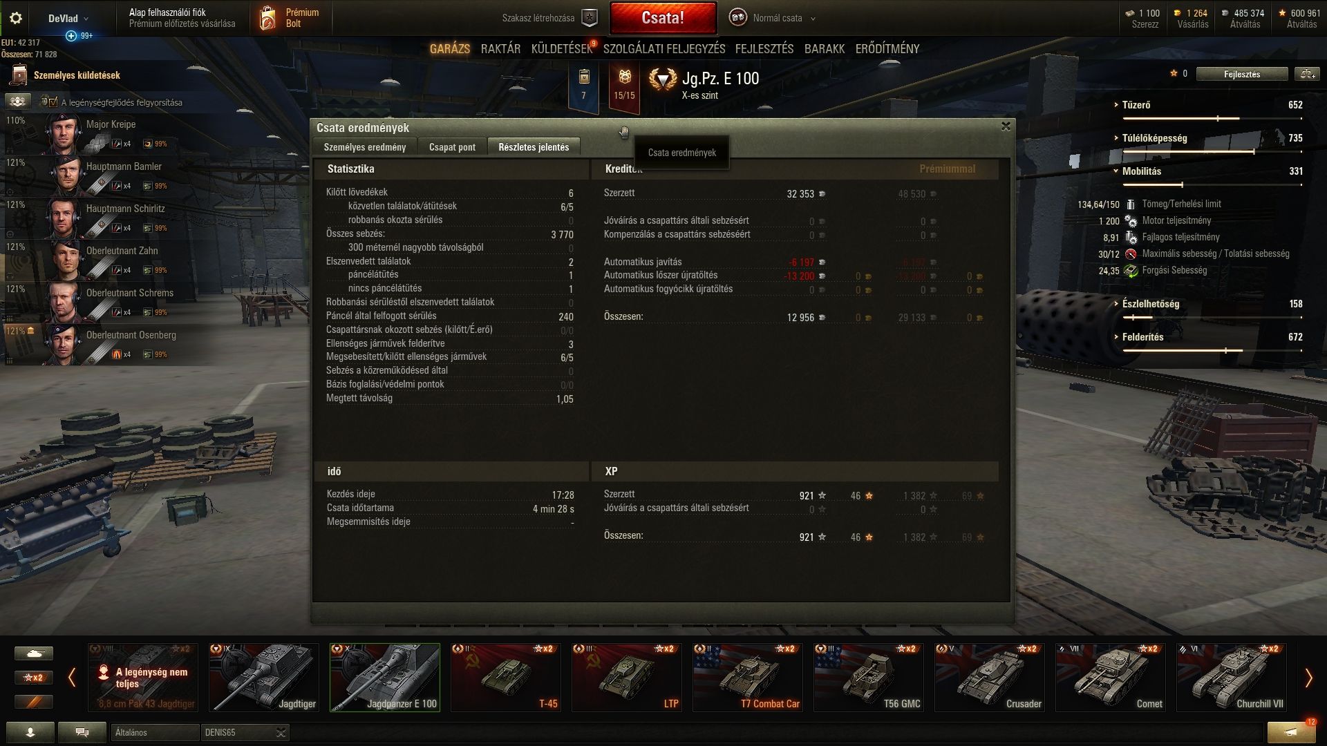 Lasgothin, ez a gyerek, csak premium gepek es egy arty gondolom free xp-bol...otthagyott a xarban fullhp-vel - elmenekult mert jött a mutans, addig tartottam magam amig odaert a csapatbol egy amx 50 100 es befejezte az oldalt. T34-85, tier6 Tier8 csatában....megkaptam hogy majd meglatjuk ki mennyit lott. Masik oldalon meg felgyujtották és ugye nem hasznal tuzoltokeszuleket....beszivta.
