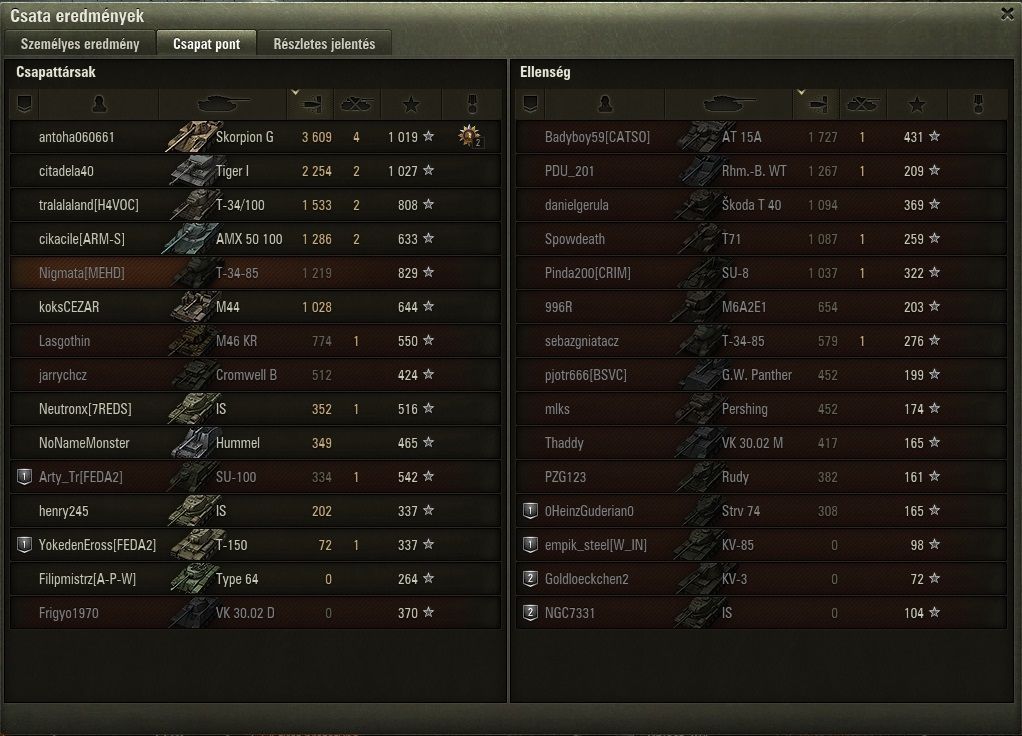 Nem ász (nem is értem 7K dmg, 1K assist, 5 kill), de életem egyik legjobb köre a WoT-ban, honnan hoztuk vissza atyaág. Aki egy izgi replayt akar látni nézze meg