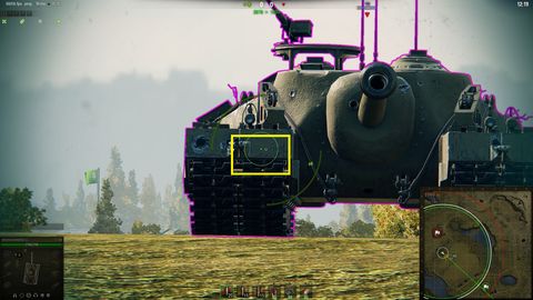 Sík terepen nem tudták beverni egymást. Viszont ha valamelyik tank egy picivel alacsonyabbra került akkor be tudta lőni a másikat. A T95 is simán belőtte szemből a láncon az E100-at. Például az E100 itt a T95-öt a bekeretezett részen. Itt zöldre is váltott az átütésjelző indikátor:
