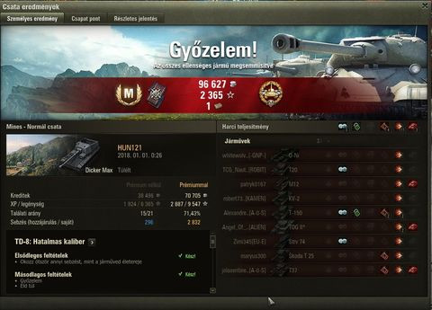 Ez az M46 Patton csuda egy gépezet. Tegnap lett fullos, kb 1000 WN8-nál mintegy 80 kör után) és ma már 1600 fölött járok vele és az első gunmark is felkerült. (Sikerült 5000 fölötti sebzést kinyomni belőle.) Ez a gun eszméletlen jó. Papíron az M48 még jobb lesz, kíváncsi vagyok az összképre.