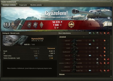 nem emlékszem, hogy volt-e már ilyen jó mutatójú csatám, ahol ennyit lőttem és abból csak egy nem talált és ütött át.