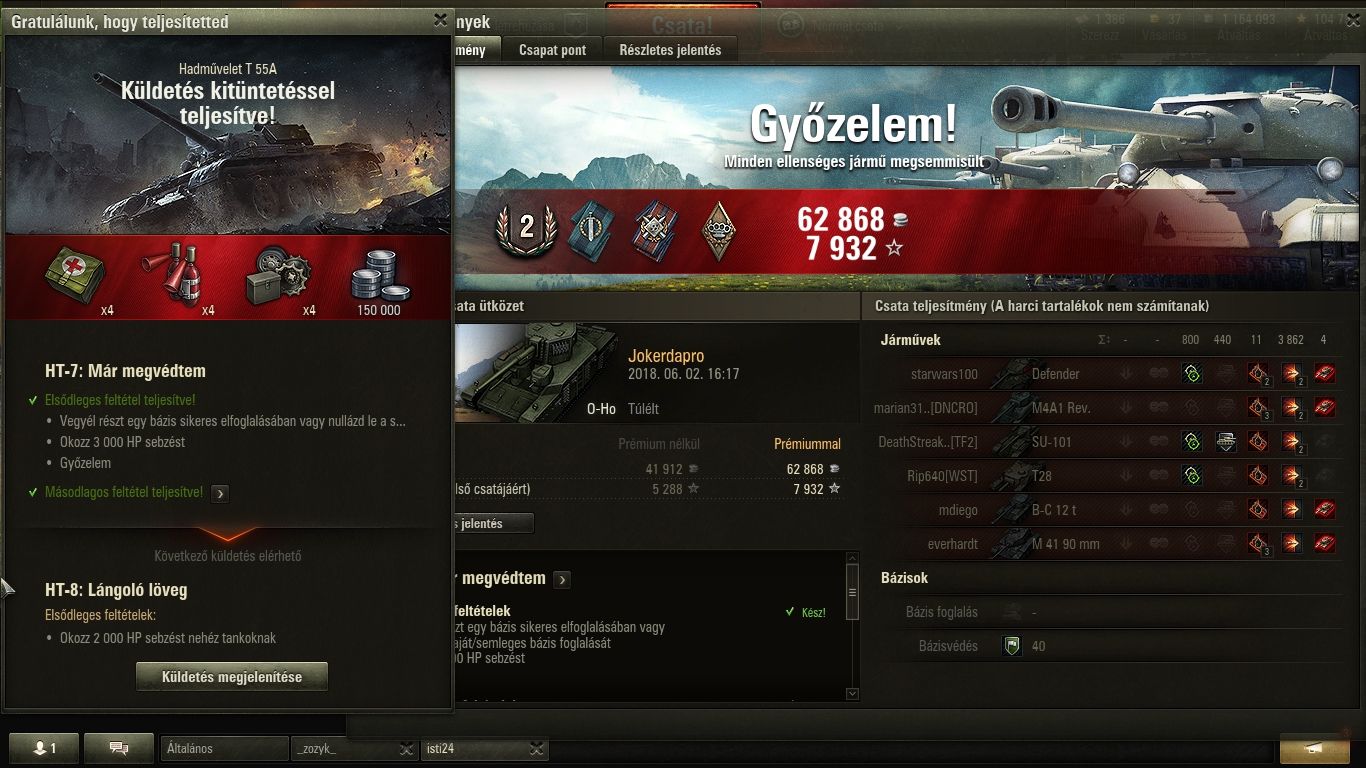 de azért egy-két jó csata sikerült. A T10-zel mentem már néhány ászt, meg a lehető legkönnyebb MM-et kaptam most, de mégis ez volt az egyik legizgalmasabb csatám vele eddig: replay -