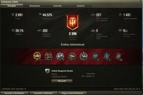 Azért mert kértem a csapatot, hogy jelentsék fel BOT-ként jött és belém zúdított egy szép nagyot IS3-al (én Panther M10-ben) majd beállt Prohorovkán K1-be, miközben Ő volt a top tier heavynk. És még én vagyok szerinte a gyáva szar alak, aki csak csaló modokkal képes játszani és egyetlen klán sem állna velem szóba. Mert hogy milyen gáz szerinte, hogy olyan klánban vagyok jelenleg, akikkel nincs se SH, se CW, semmi csak vagyunk. (igazából én sem tudom, hogy miért nem léptem már ki)De barátunk akkora önbizalommal rendelkezik, hogy létrehozott egy klánt magának - mert egyébként nem igen tudna beférni sehová - vagy ha mégis nem Ő a létrehozó, akkor hatalmas baj van az összes fejben ott a klánon belül, hogy pont egy ilyen kretént választottak meg Parancsnoknak.