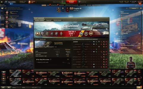 Aztán váltottam a Progettora, gondoltam oda jól jön az XP láz nyereménye a legénységnek. Szegények még csak az első skillt tapossák Buffont kivéve. Szerettem volna 5-öt behúzni a 15-ből. Hát nem jött össze. Kettőt sikerült. És, csak hogy árnyaljam a képet, a 10 Progettós csatából mindössze 2x győztünk abban szerencsére meg is lett a top10, és csupán 2x voltam tier X-es meccsben. A többi mid, top, vagy csupa 8-as. Oké, hogy nagyon nem érzem azt a tankot, gyakorlatilag alig játszottam még papír táras tankkal, így az ilyen "hit and run" móka nagyon nem megy. De azért, hogy a wr 2/10 lett vele, azért rng még külön bekaphatja. (Már bocsánat) Amikor kitárazok prémmel a Skorpi G-re (igaz, rohadt messziről, 400+ méterről), és kettő lepattan, na az gáz. Nem benyelte a lánc, lepattant.