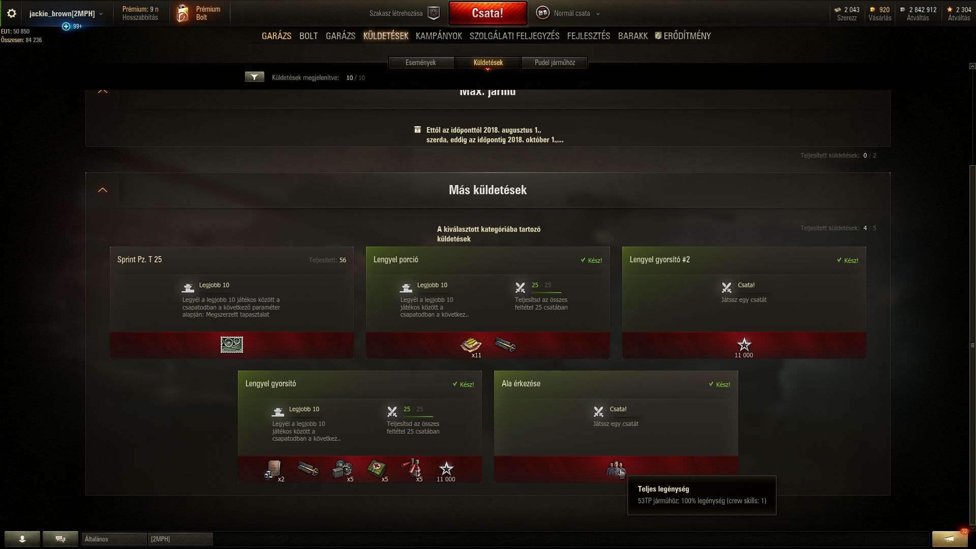 45TP Habicha húztam a napokban és már csak tízen pár ezer xp hiányzott az 53TP-hez.
