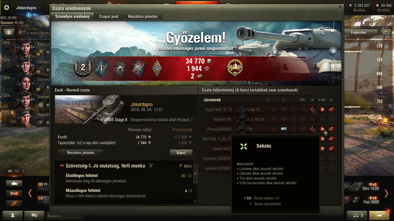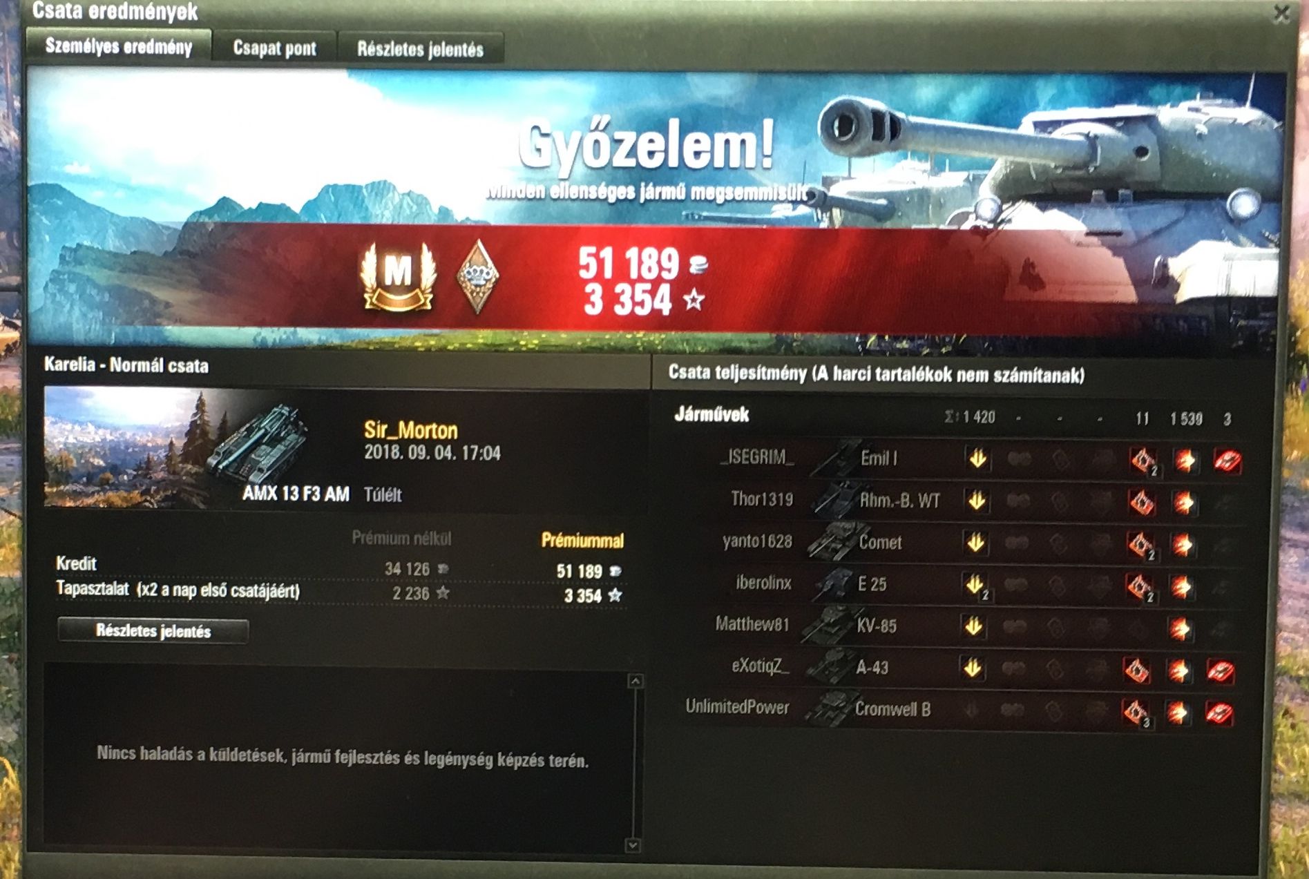 Mai küldetéssel "Lengyel gyorsító 11k xp" meg is lett a VIII-as, mentem is egy csatát 50% legénységgel és nulla felszereléssel de csak a csaj érkezett.Kicsit félrevezető a játékban olvasható "Teljes legénység"