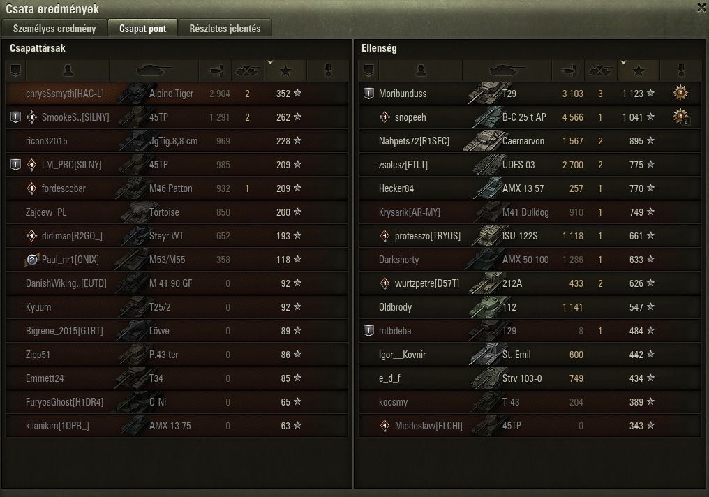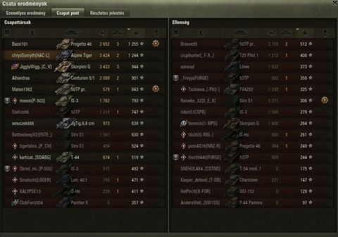 arról már nem is írok, hogy spottos küldit kellene csinálni, de sorra jövök ki az olyan csatákból, ahol 0 spot dmg-ig jutok. Többször volt a faszságom miatt, mert meghaltam korán, de nagyon sokszor hiába spotolok, olyan balfék csapatok vannak, hogy nem találnak el SEMMIT!