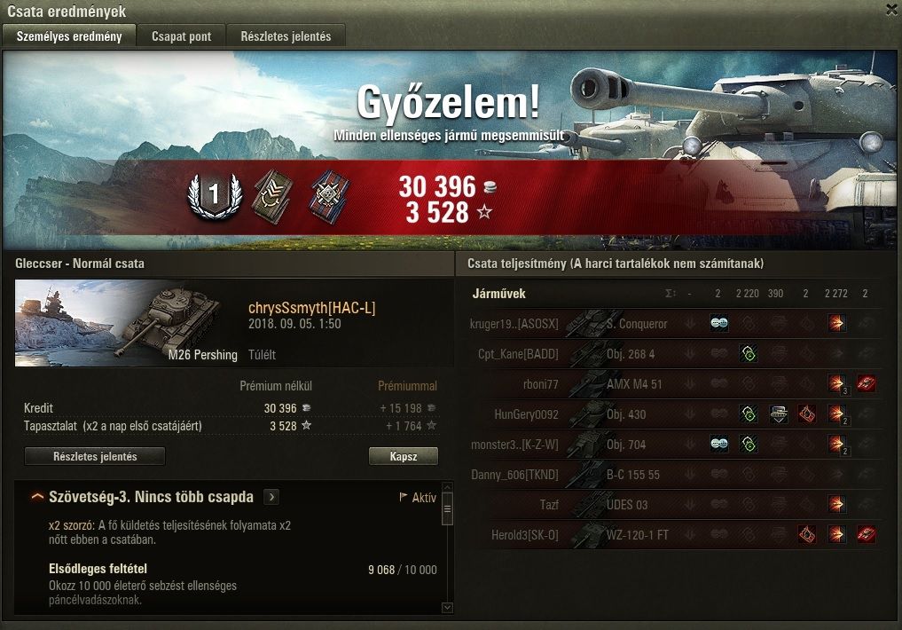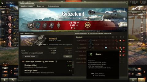 az új küldetések visszajelzésénél csak engem zavar, hogy a csata értesítőn nem azt mutatja, hogy abban a csatában éppen sikerült-e és ha igen, akkor mennyi sebzéssel, mennyi XP-el, mennyi fraggel lett több a szumma!?