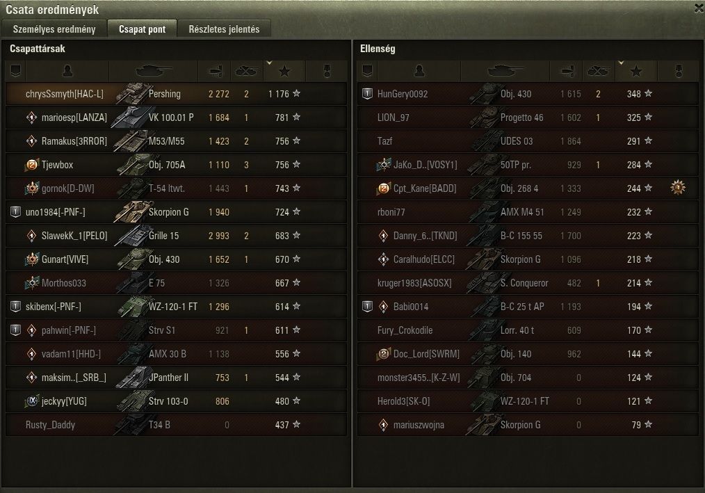 Pershing +2 tierben, végig centerben játszva top xp és 2. sebző lettem úgy hogy nem lőttem 1 goldot sem. Szerintem nincs semmi baj ezzel a tankkal, én szeretem.