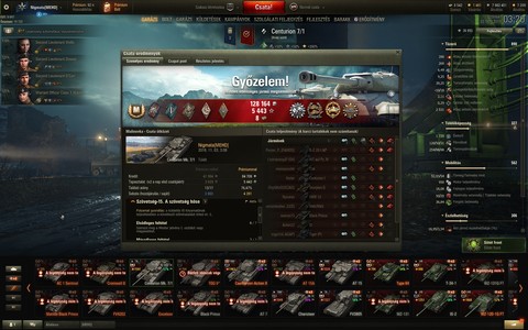 Centurion Mk. 7/1-gyel ezert nehez atlagsebzesben fejlodnom mert altalaban kulcspoziciokat probalok tartani ami nem feltetlen jar mindig magas sebzessel...de addig fogom az ellent amig pl. E50-ek lesniperezik oket messzirol mert sebzesre megy a nyomorekjuk. Persze sokat szamitott hogy nem sok free xp-t koltottem el ra es kicsi agyuval/toronnyal is mentem....Most valami 1700as atlagsebzesem van 61% winrate-tel 120 csata utan.