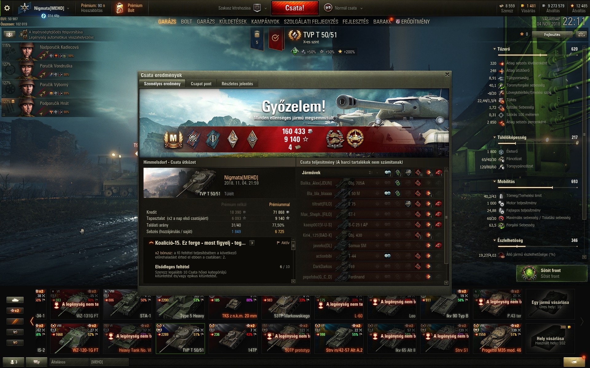 Ez a hétvégi küldetés brutálisan szórja az XP-t. 286k XP egy nap alatt. Farmoltam 2.4m kreditet és mindezt úgy, hogy csak T9-ben játszottam. És sikerült kihúzni 3db T10-es tankot (Obj 277, 113, Pz. VII).