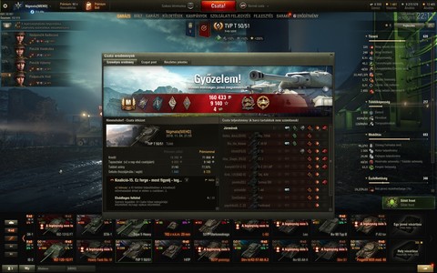 Végre TVP T 50/51 ACE, nem tudom hogy vagy miert de 1310alapXP-re beadta. Végén semmit nem talaltam el mert kellett volna a 6 kill és beremegtem. Vagy az FV4005 rémisztett meg.