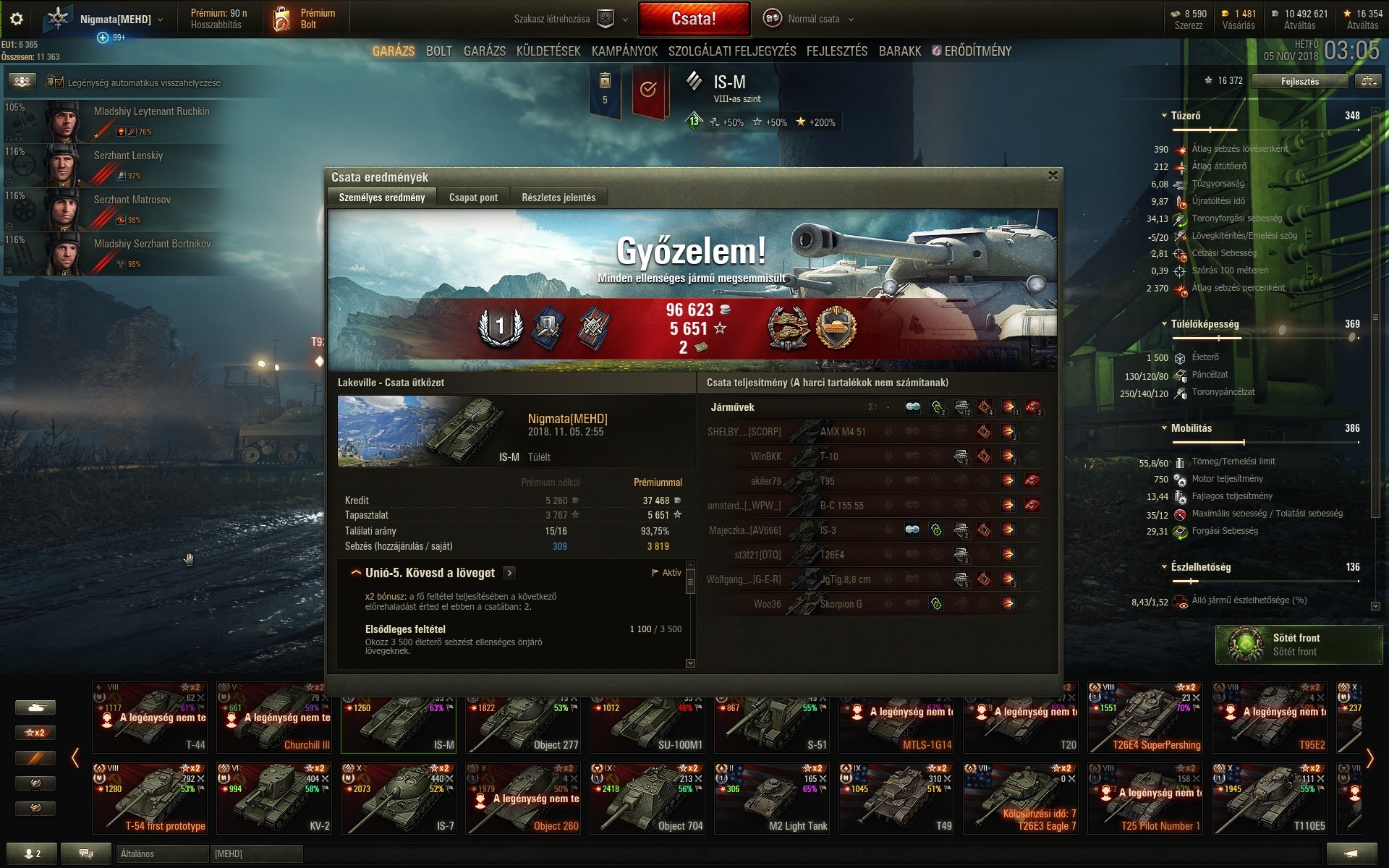 Habár akkor még ment a halloweeni +50%, de prémmel, xp boosttal és az 5x-ös szorzóval az IS-M-nél 8-9k XP köröket mentem, illetve volt egy tank ász, ahol 14k-t kaptam meg egy másik, ahol 13k-t.