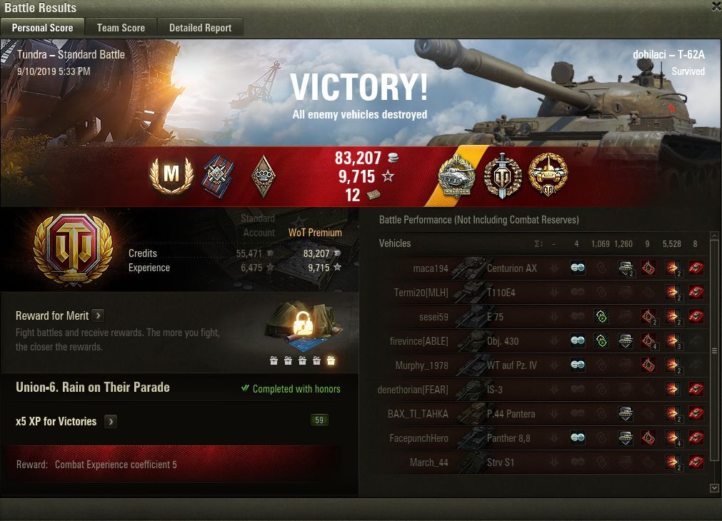 Egyébként ez sem hülyebiztos tank, mert nekem például borzasztóan megy vele, 9-es tankjaimmal több az átlagom mint ezzel és a 907-tel.