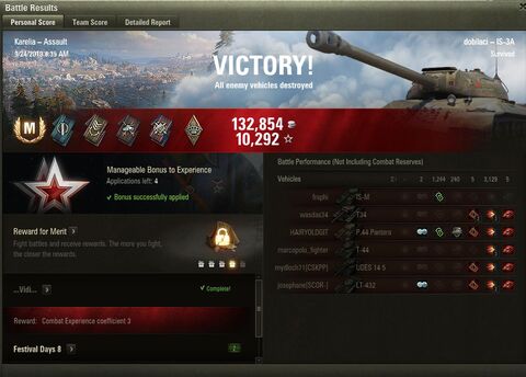 Tudom, azt mondtam nem rakok fel tobb IS3-a asz-t, de ez most tenyleg izgalmas. Szinte egyedul megfogtam az egyik flank-et, itt jon ki a tank elonye a "sima" IS-3-al szemben. A 3 loszeres tar kozelharcban nagyon gyilkos.