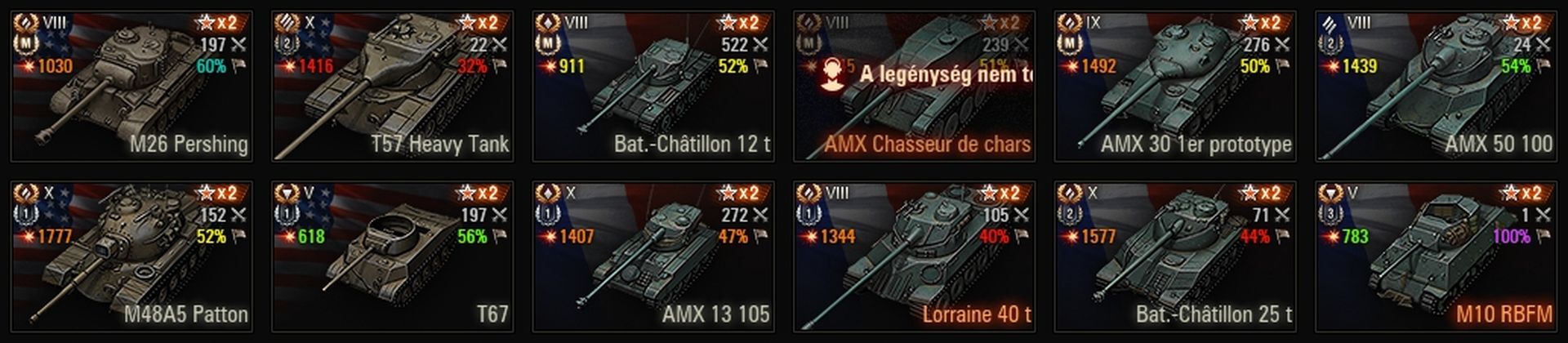 De ma nem adja vele, csak T-100-al tudok érvényesülni, de az utolsó 4 meccsen már azzal sem ment. 10-es rangig elvittem azért és már csak két sráf kellett volna a biztos 11-esig