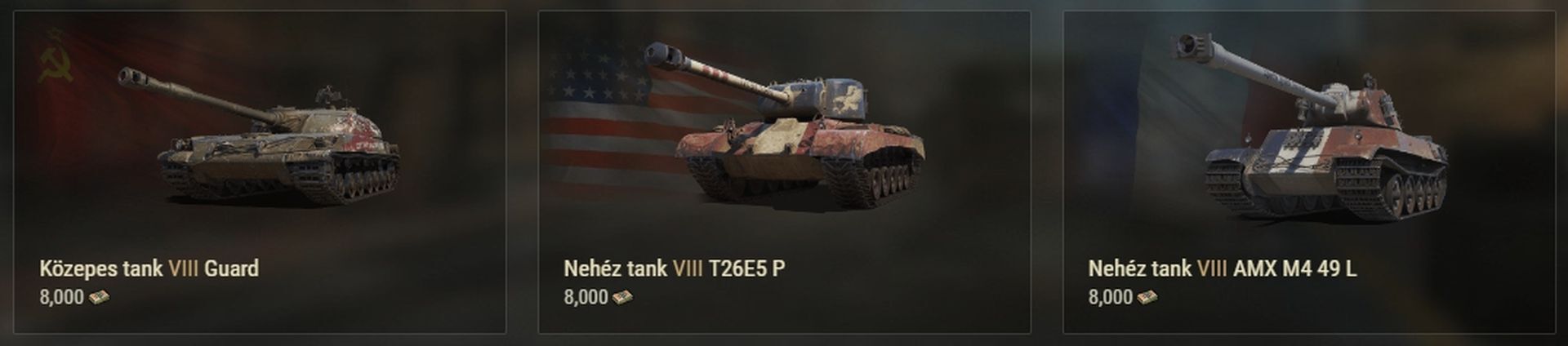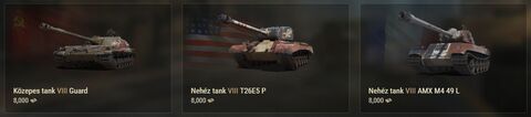 Szerintem a Patriotot mindenképpen, az egyik legjobb prémium tank (közelebb van stílusában egy mediumhoz, mint heavyhez, szóval kvázi úgy tudsz vele játszani, mint a Pershinggel). Az AMX sajnos a gold spam miatt teljesen haszontalan (ott a jó frontpáncél lenne a lényeg), a Guard meg úgy rossz, ahogy van.