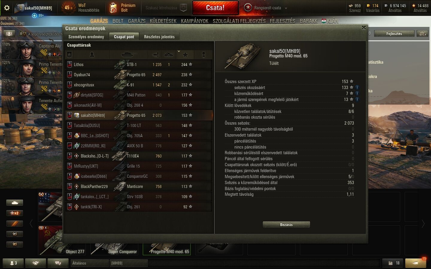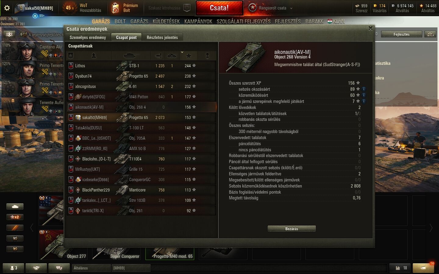 ez semmi, erre varjatok gombot: az obj 268 V4 nulla sebzéssel 89 xp-t kapott sebzés okozásáért, én a progettóval meg lószart sem a 2k sebzésre. és megelőzőtt 3 xp-vel a sorban. éljen sokáig a WG, száraz, penészes kenyéren meg poshadt vizen.